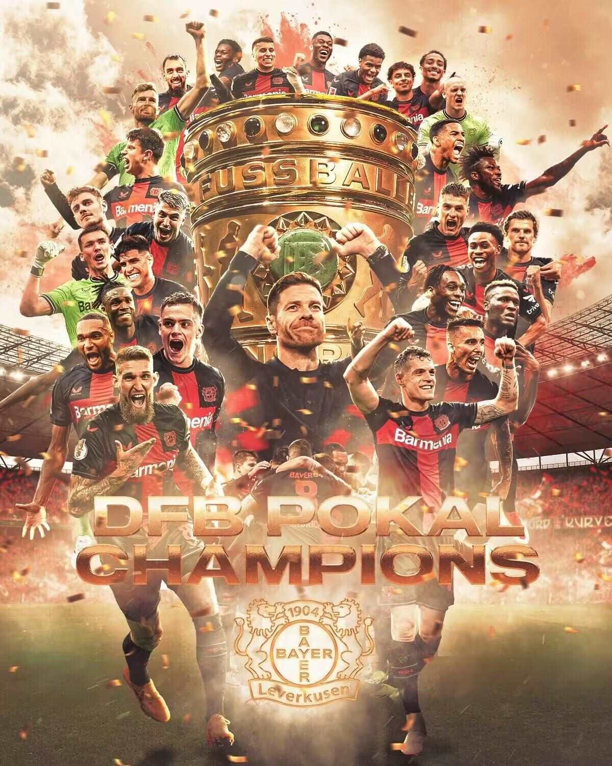 德国杯决赛,勒沃库森1-0战胜凯泽斯劳滕,本赛季夺得双冠王。
