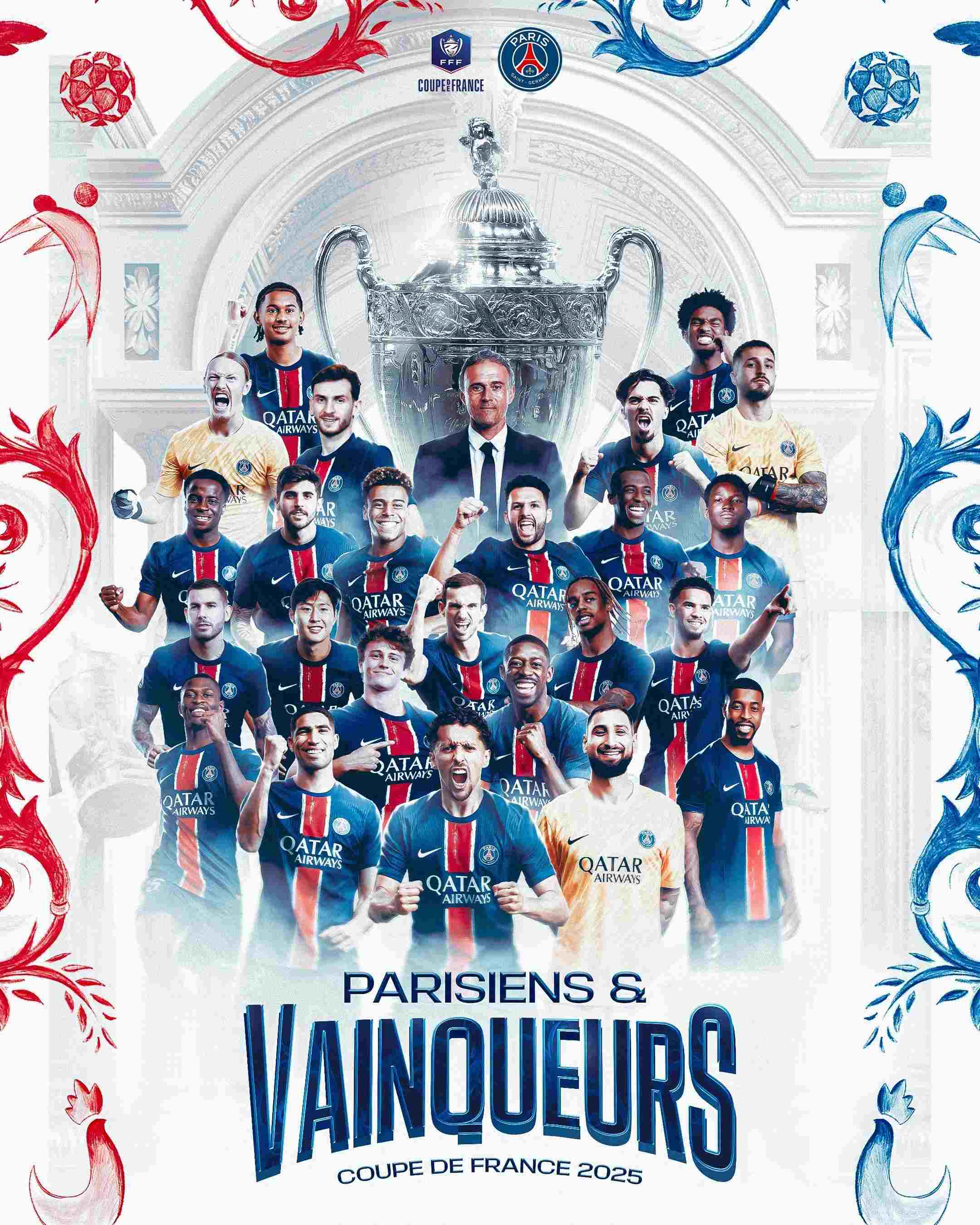 巴黎在本赛季包揽了法甲、法国杯和法超杯这三座本土冠军。