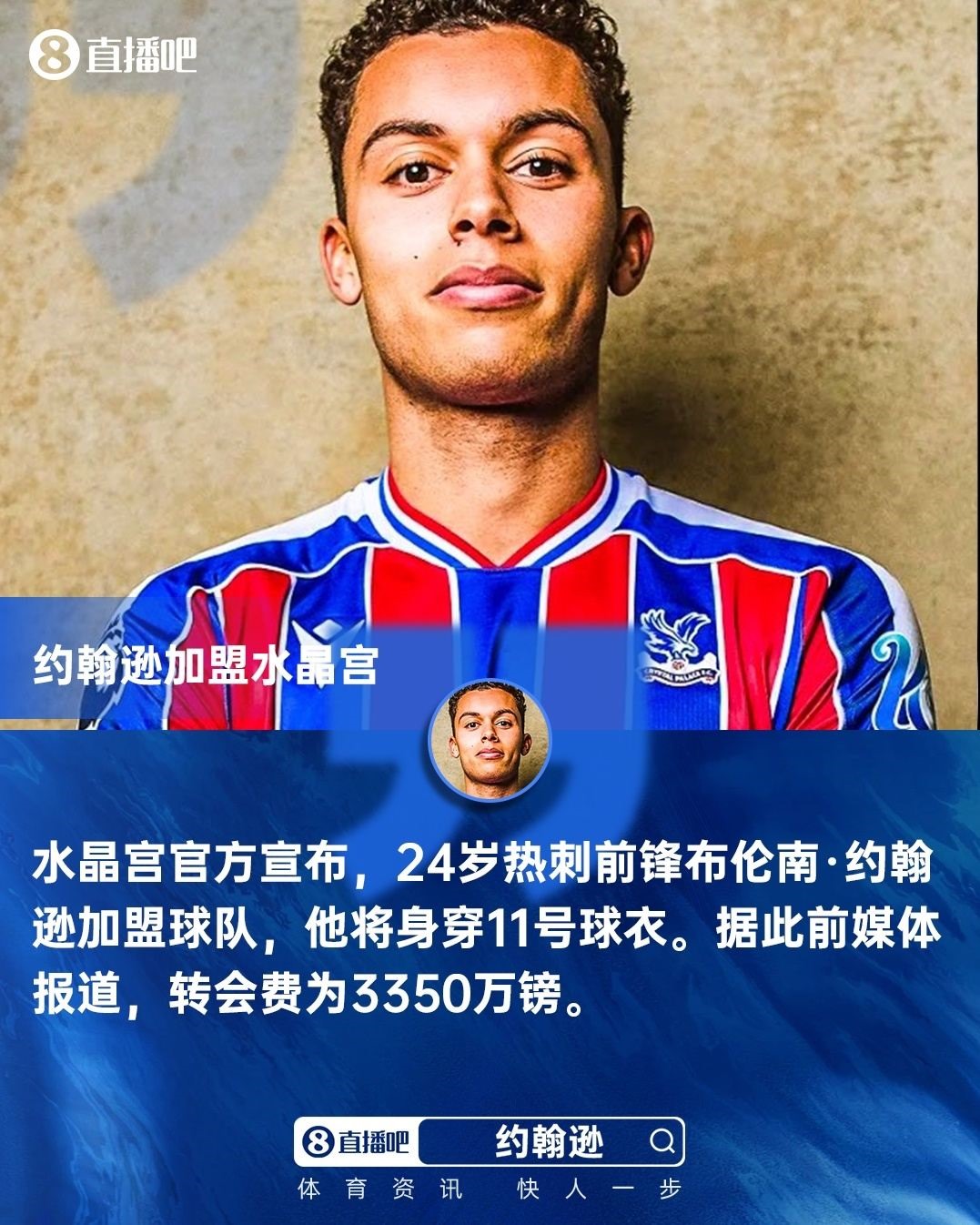 官方消息,热刺前锋布伦南·约翰逊加盟水晶宫,签约四年半。据悉转会费为3350万镑。