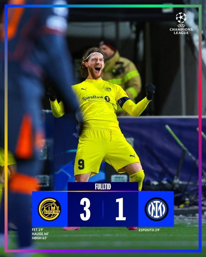 博德闪耀的欧战成名战,是2020年9月对AC米兰的遗憾失败(2-3)、及2021年欧协联小组赛那场6-1血洗罗马。那次大胜也让欧洲足坛第一次认真审视,这支来自北极圈的球队。之后他们的索尔巴肯,去到了穆帅麾下。接下来,米兰从他们手里买走了海于格。就是那个在今日对国米进球后说“在米兰期间没机会踢德比,现在破门感觉非常激动”的海于格。昔日,他是米兰很看好的一个小将,可惜,没有在圣西罗打出来名堂。不过,回归了本土他依旧很成功。