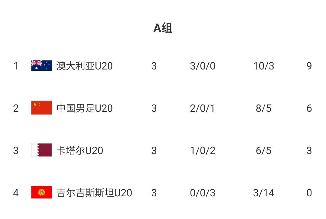 主场作战的国足列A组第二晋级,小组赛打出了2胜1负的战绩,积分为6分。其中,前两战小伙子们表现不俗,轻松战胜了卡塔尔、吉尔吉斯斯坦,展现了很好的实力。末战在上半时替补轮换、下半时才安排主力的情况下1-2遗憾输给澳洲,屈居次席。净胜球方面达到了 3,进8球丢5球的成绩是不错的。