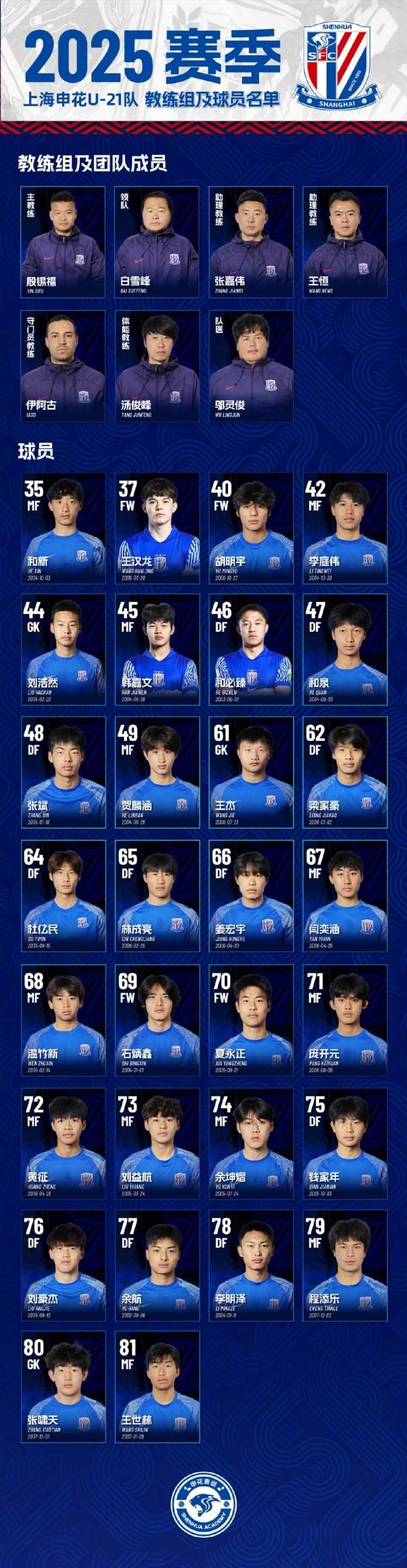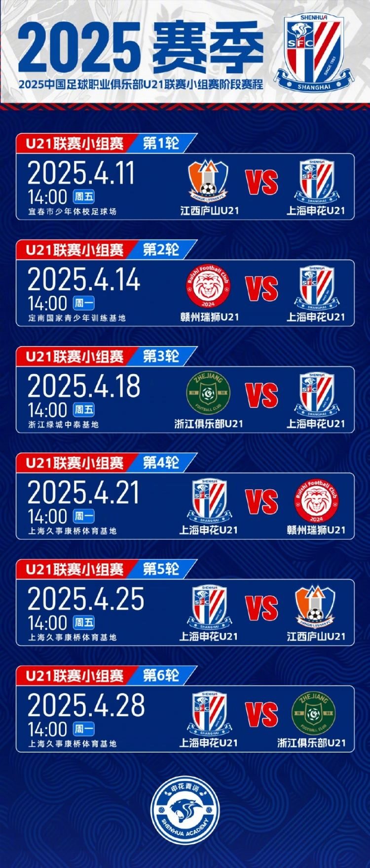 梯队巡礼:上海申花U21队&U21联赛赛程表