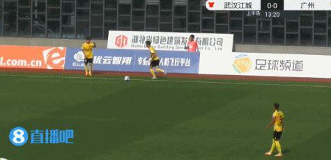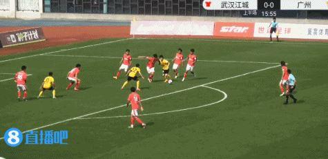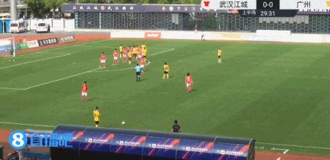 第16分钟,广州队球员禁区内完成一脚劲射,武汉江城门将飞身将球扑出底线。↓