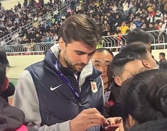 泽卡、马德鲁加、彭啸来到了比赛现场,与当地球迷互动。