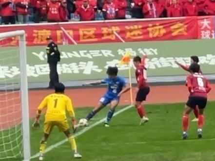 比赛伤停补时阶段,0-1落后的大渡口队打入绝平进球,但被主裁判吹掉,认定皮球先出了底线。大渡口球员对判罚非常不满,纷纷找主裁判要个说法,一度上升到肢体冲突,主裁判则在众多安保的保护下退场。