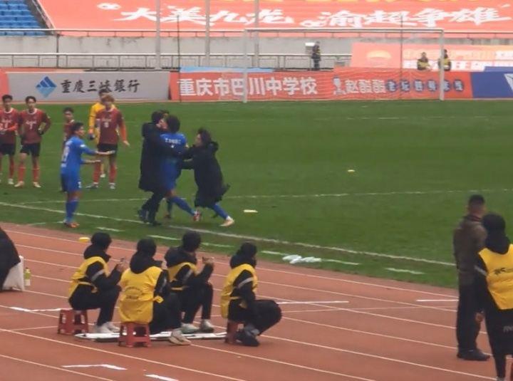 搜体育 足球资讯 拉都拉不住!渝超大渡口队绝平被吹出界在先,球员暴怒追打裁判