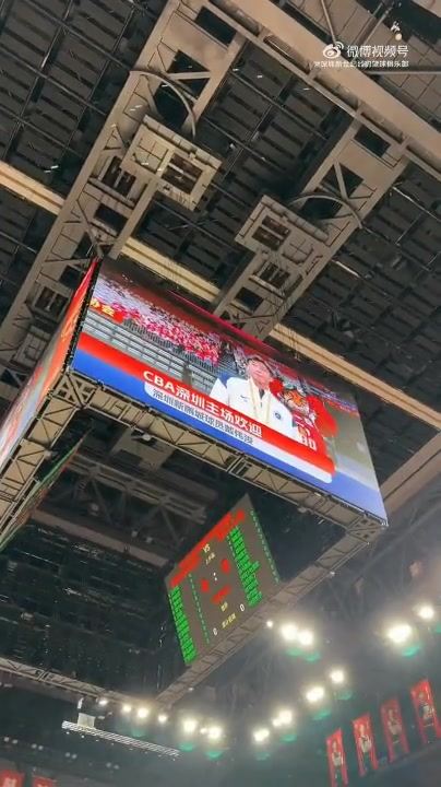 视频中深圳主场也在大屏幕上欢迎戴伟浚,戴伟浚也为深圳男篮和贺希宁点赞加油。