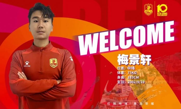 青岛红狮官方:徐嘉石、付杰、李明璠、梅景轩等5人加盟球队