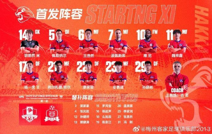 北京时间3月14日19:30,2026怡宝中甲联赛首轮比赛,梅州客家犀旺队0-3不敌延边龙鼎。
