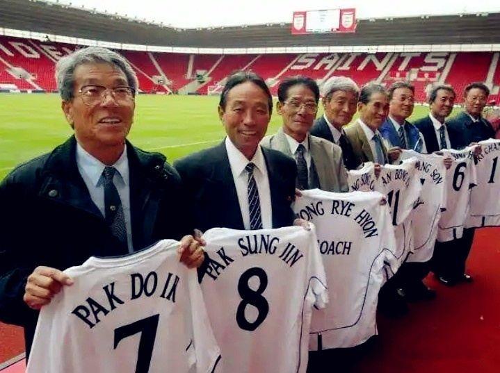 朝鲜在小组赛期间驻扎于米德尔斯堡,当地球迷在与球员的相处中逐渐建立起了感情。1/4决赛对阵金球先生尤西比奥领衔的葡萄牙,朝鲜在古迪逊公园享受到了主场待遇,3000名米堡球迷组成的助威团为他们摇旗呐喊。后来就是那场著名的进球大战,朝鲜在3-0领先的情况下遭遇5球逆转,团队的斗志被巨星的光芒遮盖,超级黑马虽败犹荣。