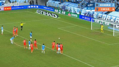 再扳一球!张宸梁97分钟手球送点 韦斯利点射破门,新鹏城3-4玉昆
