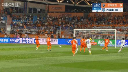 第41分钟,王政豪后场起长传,基莱斯单刀破门,云南玉昆0-1天津津门虎。↓