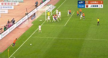 中超第6轮,山东泰山vs上海海港,比赛第72分钟,克雷桑小角度任意球直接入网,颜骏凌不满防守,泰山1-1扳平海港