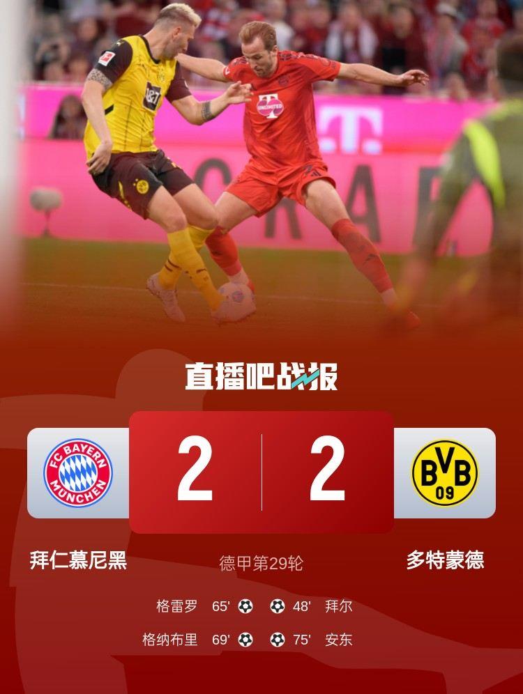 德甲第29轮,拜仁2-2战平多特蒙德,格纳布里一条龙破门,金玟哉失误。