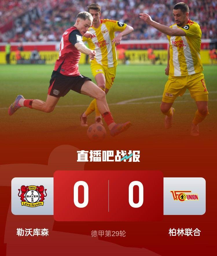 德甲第29轮,勒沃库森0-0闷平柏林联合。