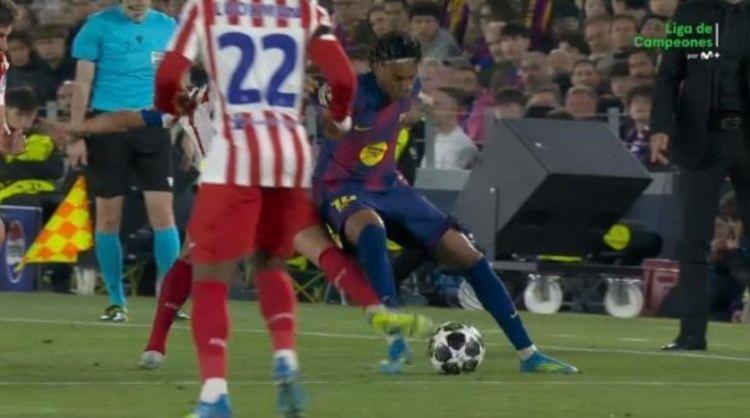 第9分钟,科克对奥尔莫明显犯规阻断巴萨反击,裁判未出示黄牌↓