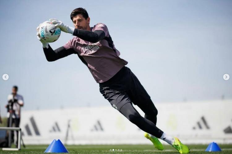 皇马门将库尔图瓦更新社媒,晒出了个人训练照片。