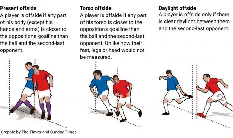 值得一提的是,英国各协会在上周征询欧足联高层意见后,获得了欧足联的支持。预计他们将提出一项折衷方案:即仅当球员躯干的任何部分处于防守球员之前时,才被视为越位,而脚、腿和头部不纳入测量范围。