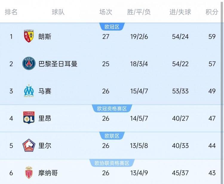 此役过后,朗斯积59分登顶法甲积分榜,多赛两场领先巴黎2分。法甲第29轮比赛,两队将展开正面对决。