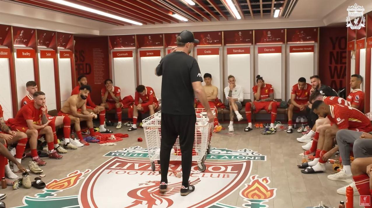 克洛普告别战,利物浦2-0战胜狼队以联赛第三结束本赛季。赛后,克洛普在更衣室向球员做了最后的演讲。