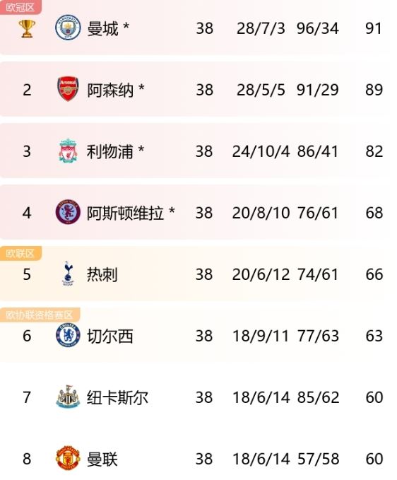 而即使滕哈赫没有带队夺得足总杯冠军,滕哈赫作为主帅在英超前两个赛季取得的成绩也好于克洛普、阿尔特塔的头两个赛季。