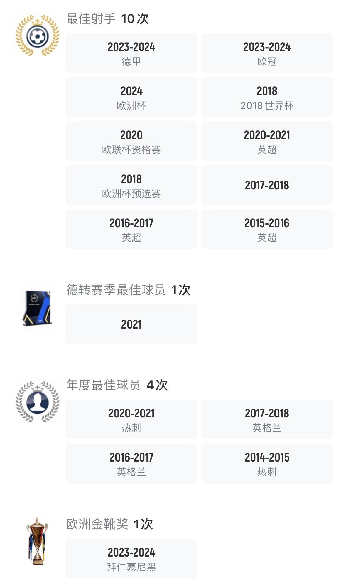 凯恩个人荣誉↓