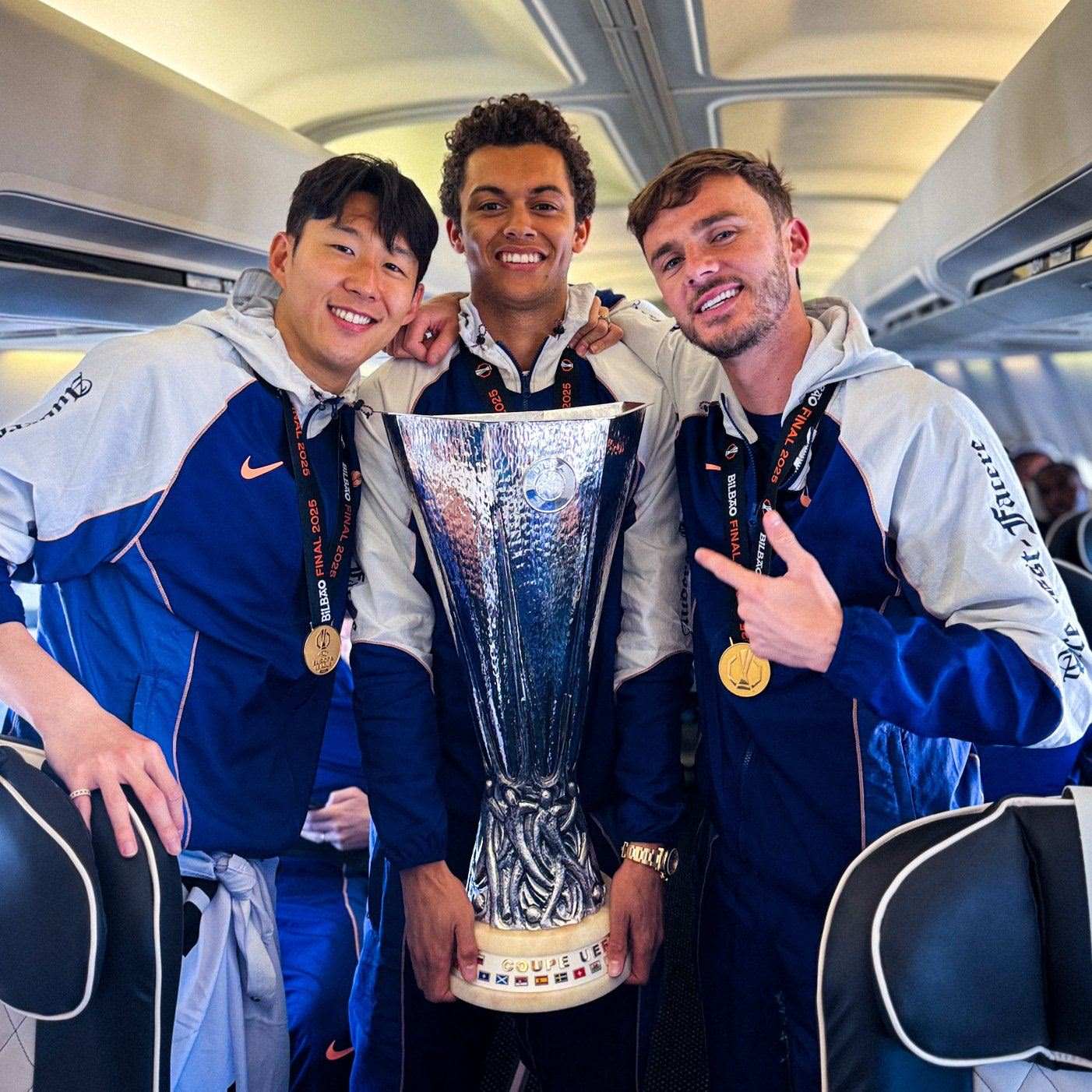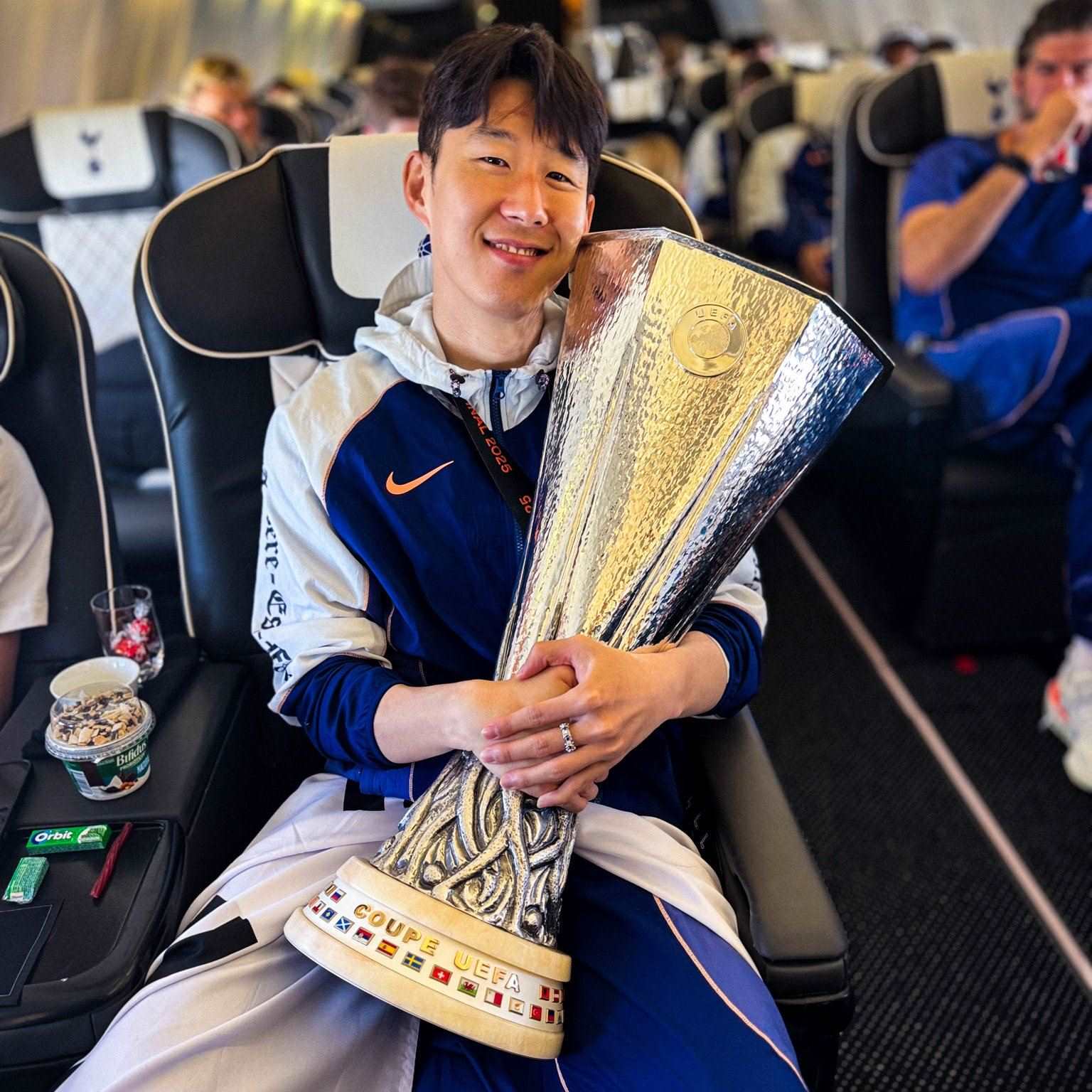 搜体育 足球资讯 载誉归来!热刺全队携奖杯归国,孙兴慜戴奖牌开心合影