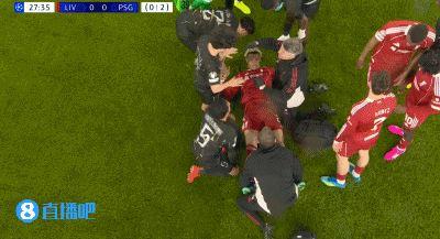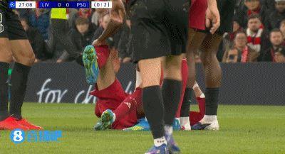 这位前锋在周二安菲尔德对阵巴黎的欧冠比赛上半场因场地打滑摔倒,随后被迫离场。