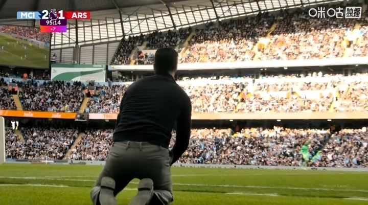 英超第33轮,曼城暂2-1阿森纳。