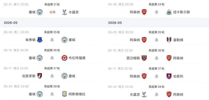 不存在附加赛可能!曼城枪手同分将比较净胜球、进球数、交手战绩