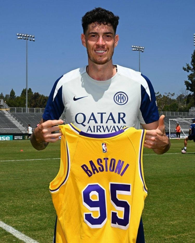 搜体育 足球资讯 劳塔罗、巴雷拉、巴斯托尼、姆希塔良获赠湖人球衣