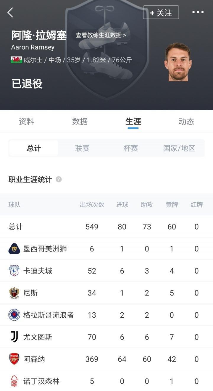 35岁威尔士中场拉姆塞在社媒自宣退役,结束19年职业生涯。